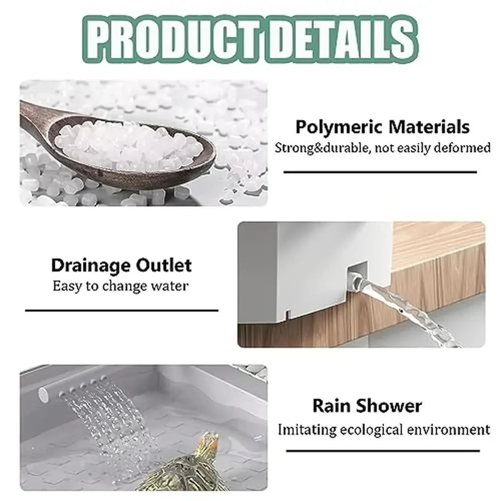 Our turtle tank boasts multiple functional areas tailored to mimic the natural habitat of your reptiles. Key areas include: