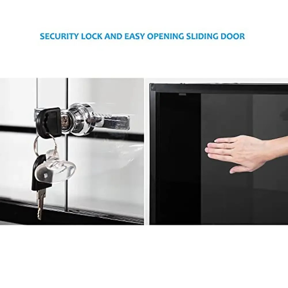 - Front sliding doors equipped with a secure lock, preventing escapes and offering peace of mind.