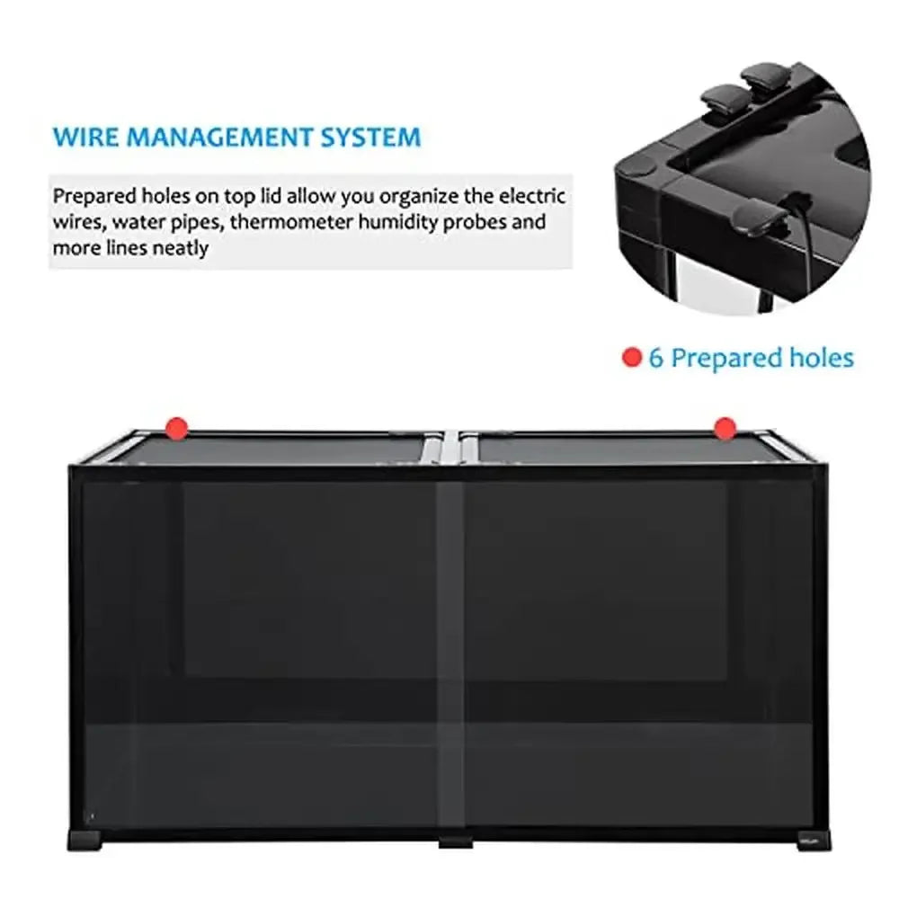 Introducing the Large Reptile Terrarium Tank 120 Gallon Eco-Tank, the ultimate habitat for your beloved reptiles, amphibians, and more! Measuring a spacious 48" x 24" x 24", this tank is crafted from high-quality tempered glass, ensuring durability and safety for your pets.
