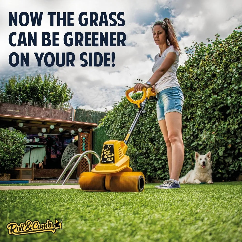 Introducing the Sweeper Broom by Roll & Comb - the ultimate solution for keeping your artificial grass pristine and inviting. Specifically designed for fake grass cleaning, this corded electric power rake excels at maintaining a vibrant look while effortlessly removing debris, dirt, and leaves.